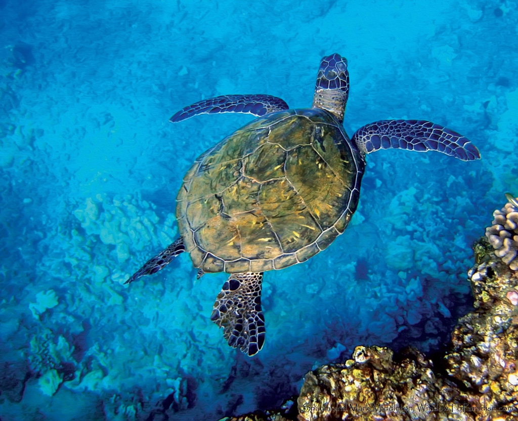 Shayla just loves the hovering above perspective on this Hawaiian Green sea turtle.