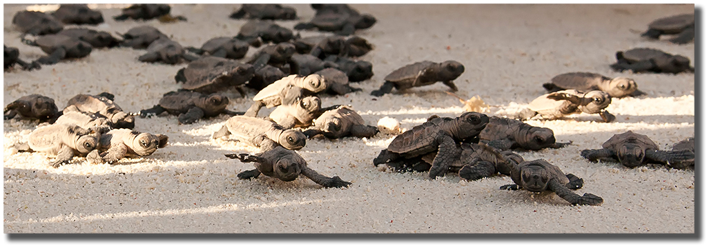 Join us on an idyllic tropical island as over 100 hawksbill baby turtles find their way to the ocean for their first swim :)