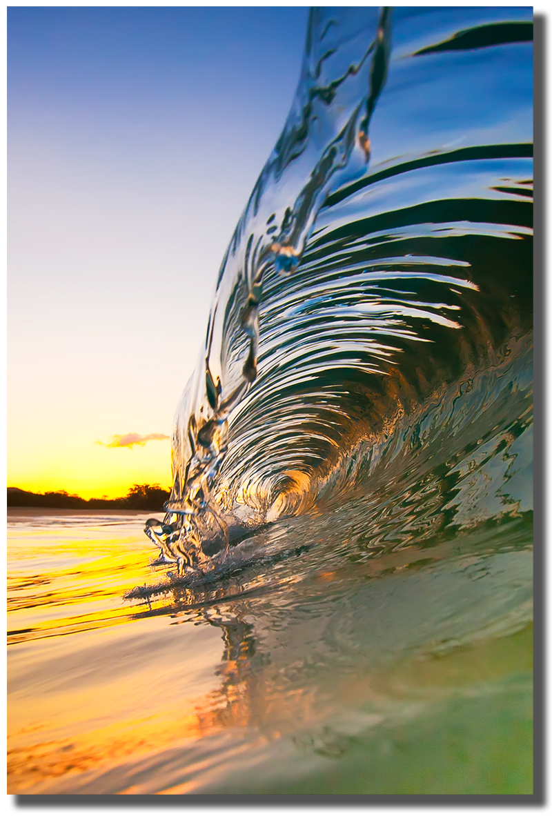 Beautiful glassy ripples reflect the morning sun on this small beautiful barrel that seems to reach to the heavens.